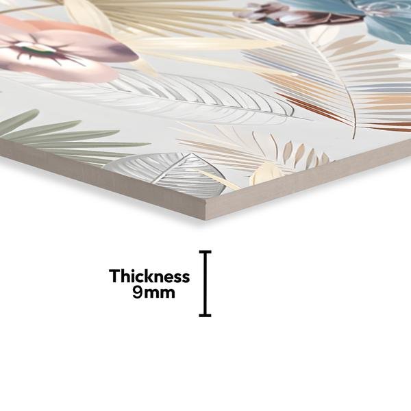 Crafted for long-lasting durability, the Tropical Wall Tile is made with vitrified materials to ensure exceptional strength and resilience. Its robust 9 mm thickness provides a sturdy build that can withstand heavy use, while the matte finish enhances its resistance to wear and tear. Whether used in kitchens, bathrooms, or accent walls, this tile creates a practical and visually appealing solution for anyone seeking elegance paired with functionality. Plus, its low-maintenance surface makes cleaning and upkeep quick and hassle-free.